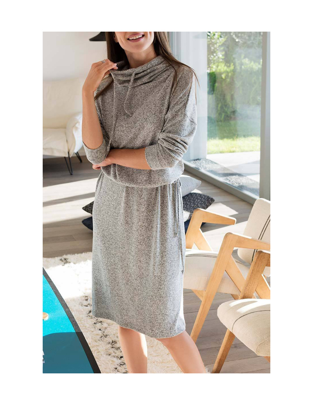 Scopri il perfetto equilibrio tra comfort e stile con questo abito firmato Canat de Paris. Realizzato in morbida maglina di jersey nella preziosa viscosa, è il capo ideale da indossare in casa o nel tempo libero.