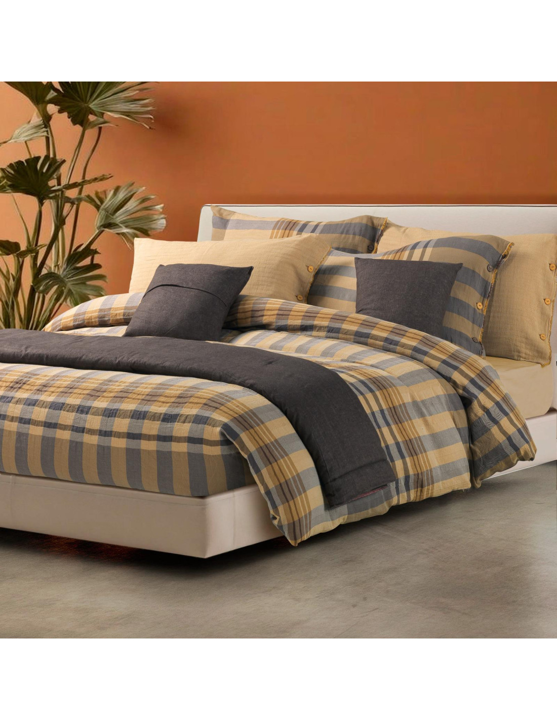 Una novità raffinata ed elegante per la tua camera da letto.Questo copripiumino è realizzato in puro cotone tinto in filo, con una speciale lavorazione effetto lino che dona un look vissuto e naturale, senza rinunciare alla morbidezza.