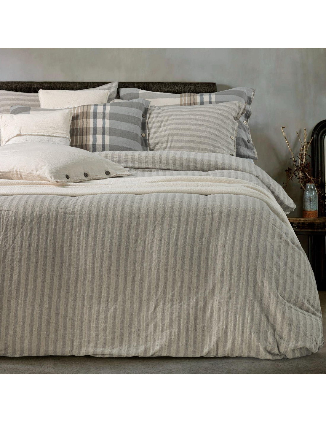 Una novità raffinata ed elegante per la tua camera da letto.Questo copripiumino è realizzato in puro cotone tinto in filo, con una speciale lavorazione effetto lino che dona un look vissuto e naturale, senza rinunciare alla morbidezza.