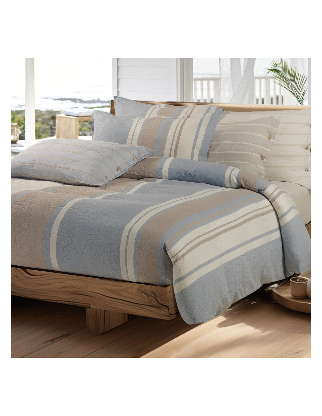 Scopri il comfort autentico del completo letto in puro cotone tinto filo, con finitura stone washed per un effetto vissuto, morbido e naturalmente elegante.