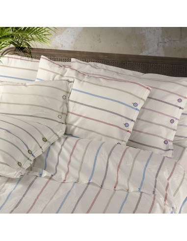 - 2 PIAZZE Lenzuolo sopra righe 255x290 n. 2 Federe chiusura 3 bottoni motivo a contrasto 50x80 Sottolenzuolo con angoli 180x200x32
