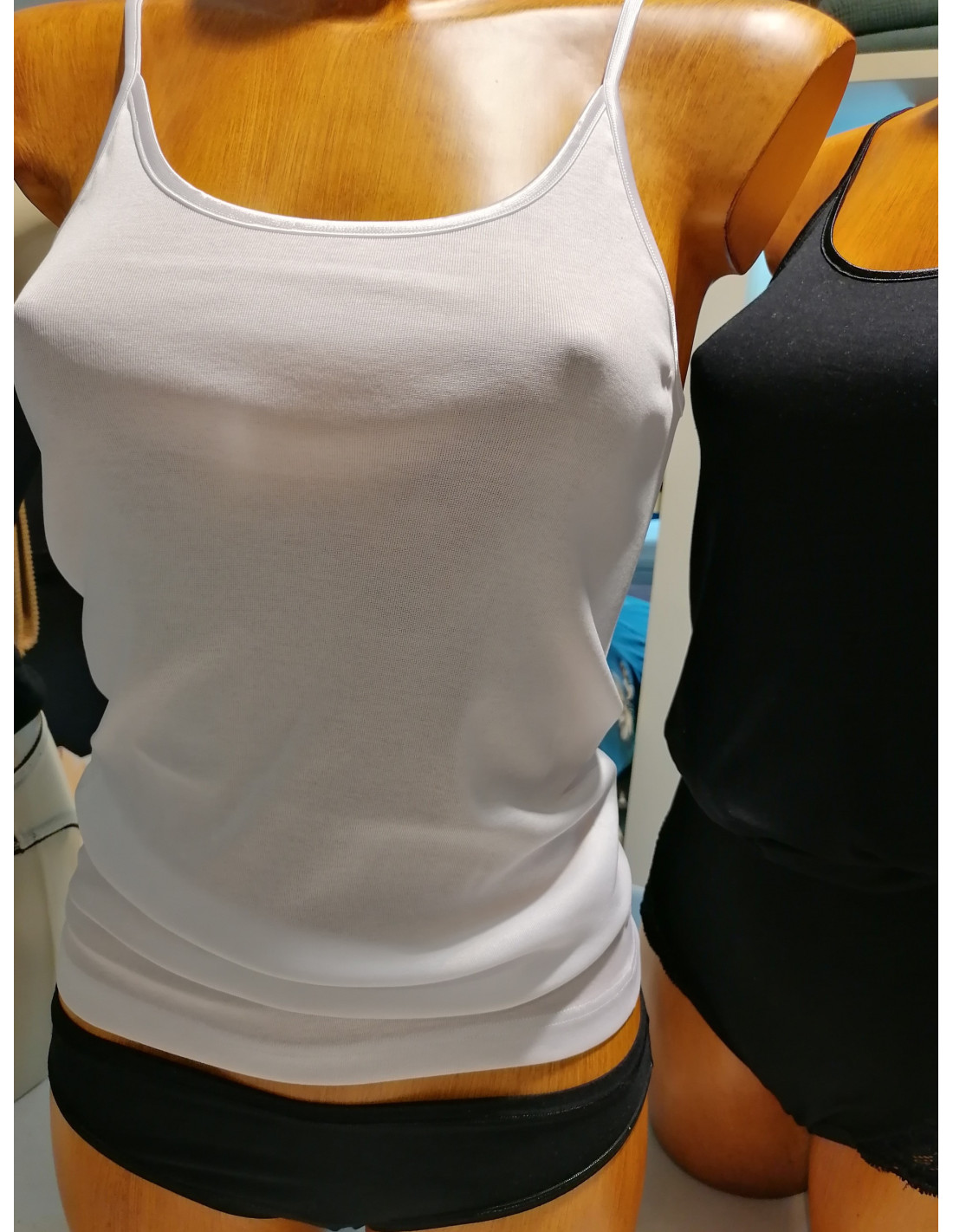 Canottiera da donna a spallina sottile realizzata in maglina puro cotone filo scozia, morbido, traspirante e confortevole sulla pelle. Il colore BIANCO la rendeintramontabile come intimo.