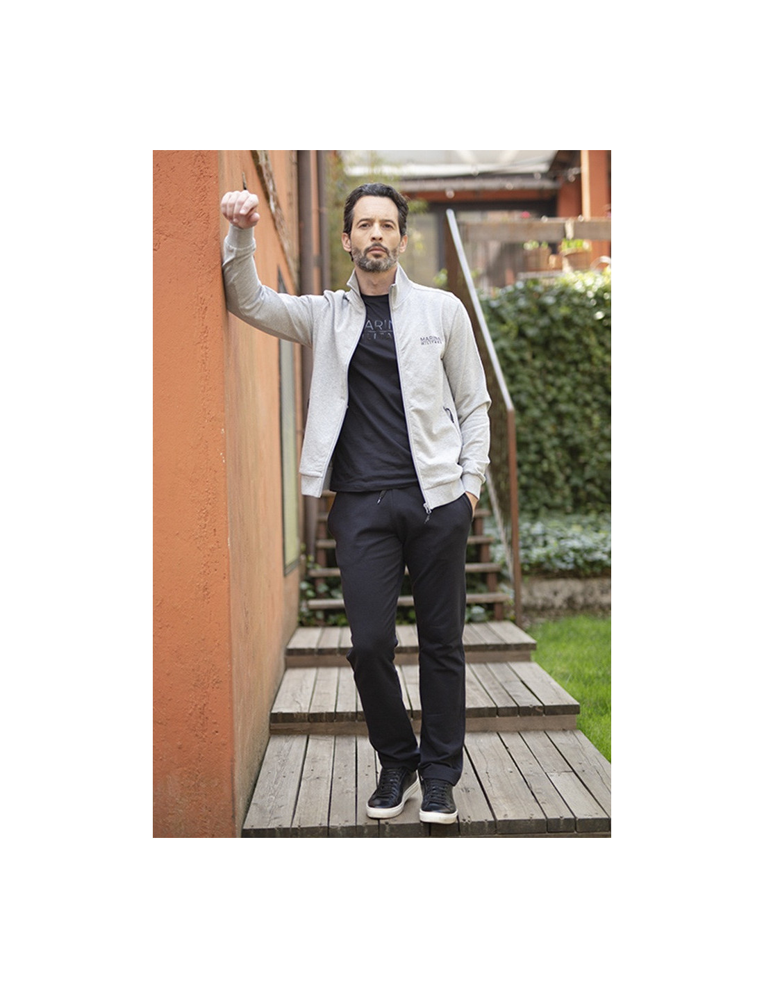 Tuta da uomo composta da giacca, t-shirt e pantalone, perfetta per chi cerca comfort, stile e cura nei dettagli.