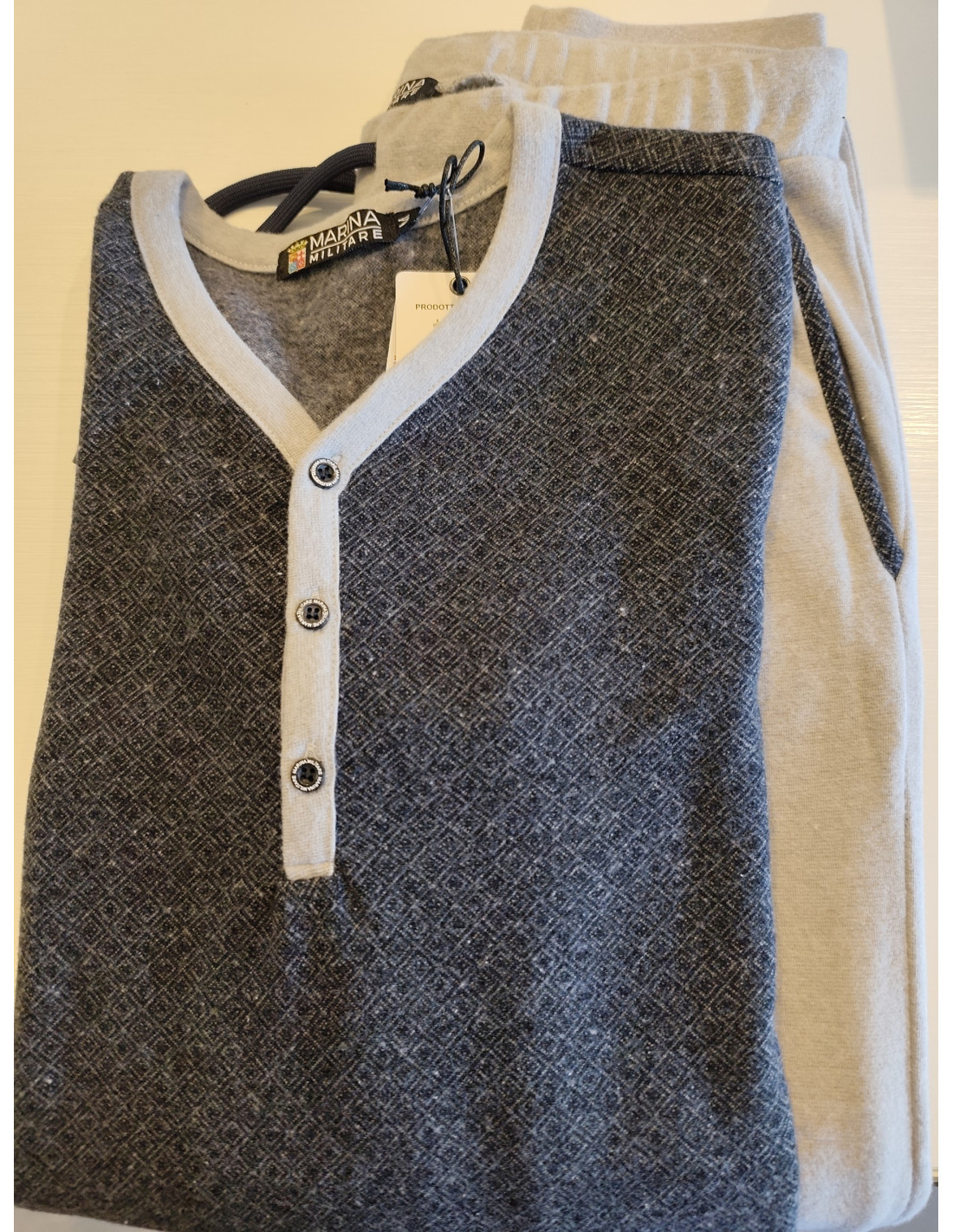 👔 Pigiama Uomo girocollo raffinato – Microfantasia, logo MM e pantalone nido d’ape