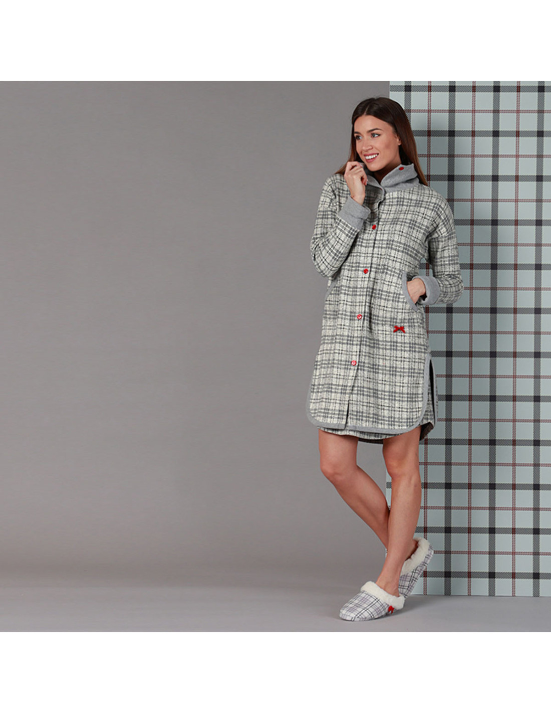 Dal gusto giovane e contemporaneo, questa vestaglia unisce praticità e calore in un unico capo.