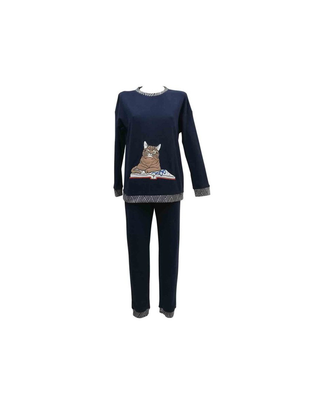 Pigiama invernale da donna in tessuto misto cotone di peso medio, caldo e soffice al tatto, ideale per i momenti di relax in casa durante la stagione fredda.Il modello è impreziosito da un simpatico ricamo con applicazione a tema coniglio, che dona un tocco dolce e giocoso al capo.