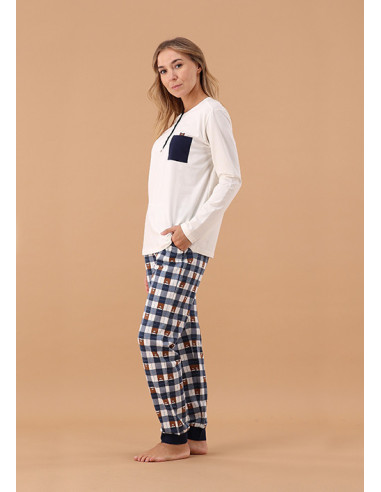 Pigiama da donna caldo e confortevole, ideale per le fredde serate invernali.La maglia dal fondo unito è impreziosita da un simpatico gatto ricamato e applicato, dettaglio che aggiunge un tocco giocoso e originale al look da casa.