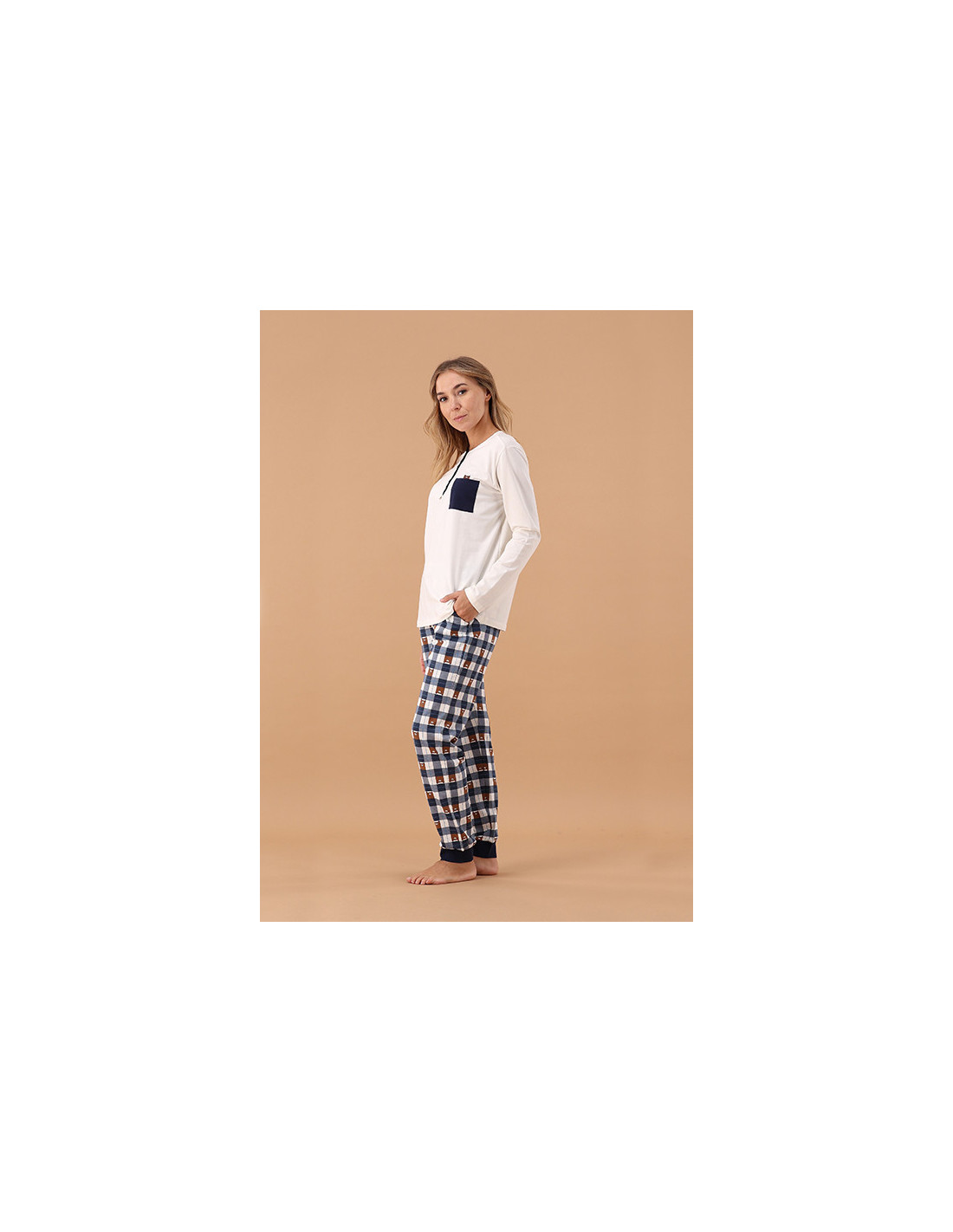 🐻 PIGIAMA ELEGANTE IN JERSEY STRETCH – Con Orsetto e Macro Vichy