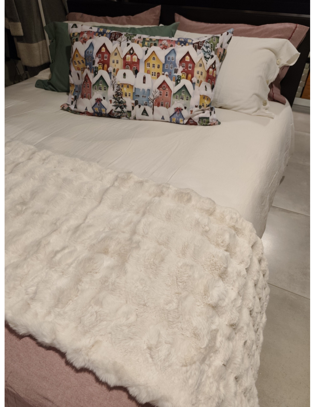 Perfetta per le stagioni fredde o di mezza stagione, può essere utilizzata sia come coperta da letto sia come copriletto decorativo, donando un tocco di comfort e sofisticatezza alla camera.