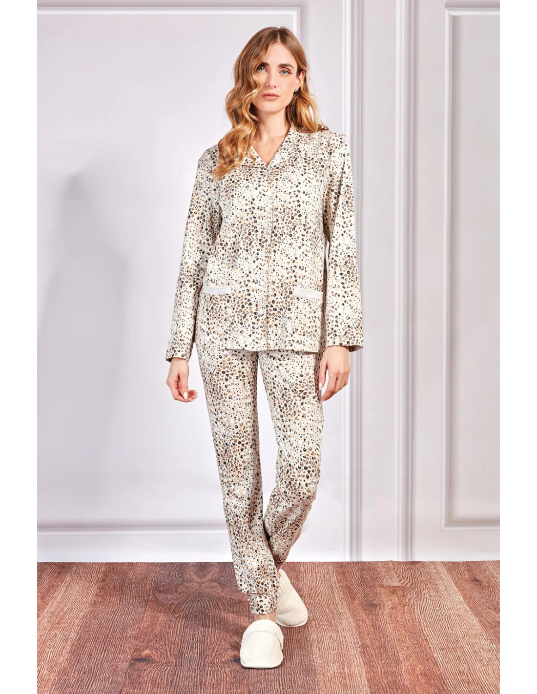 Scopri il comfort naturale del nuovo pigiama da donna in puro cotone caldo, nel raffinato tono beige naturale.