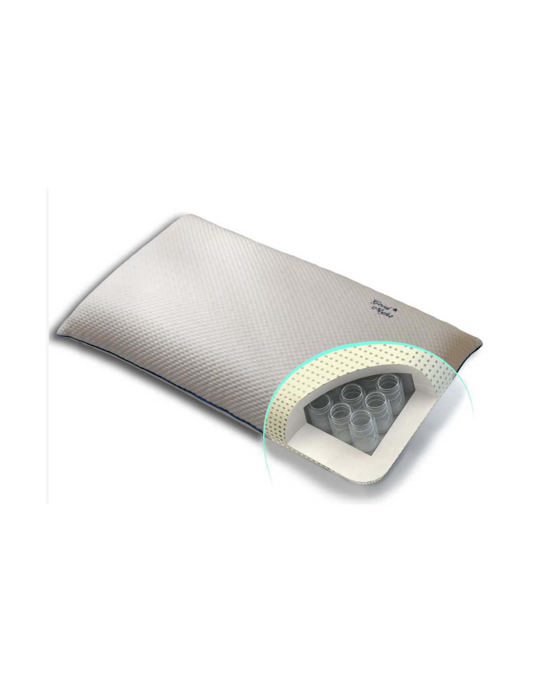 Il cuscino Zefiro Viscospring unisce innovazione e comfort grazie a un interno esclusivo con molle insacchettate singolarmente e una speciale imbottitura in memory foam traforato con 2.000 fori di ventilazione.