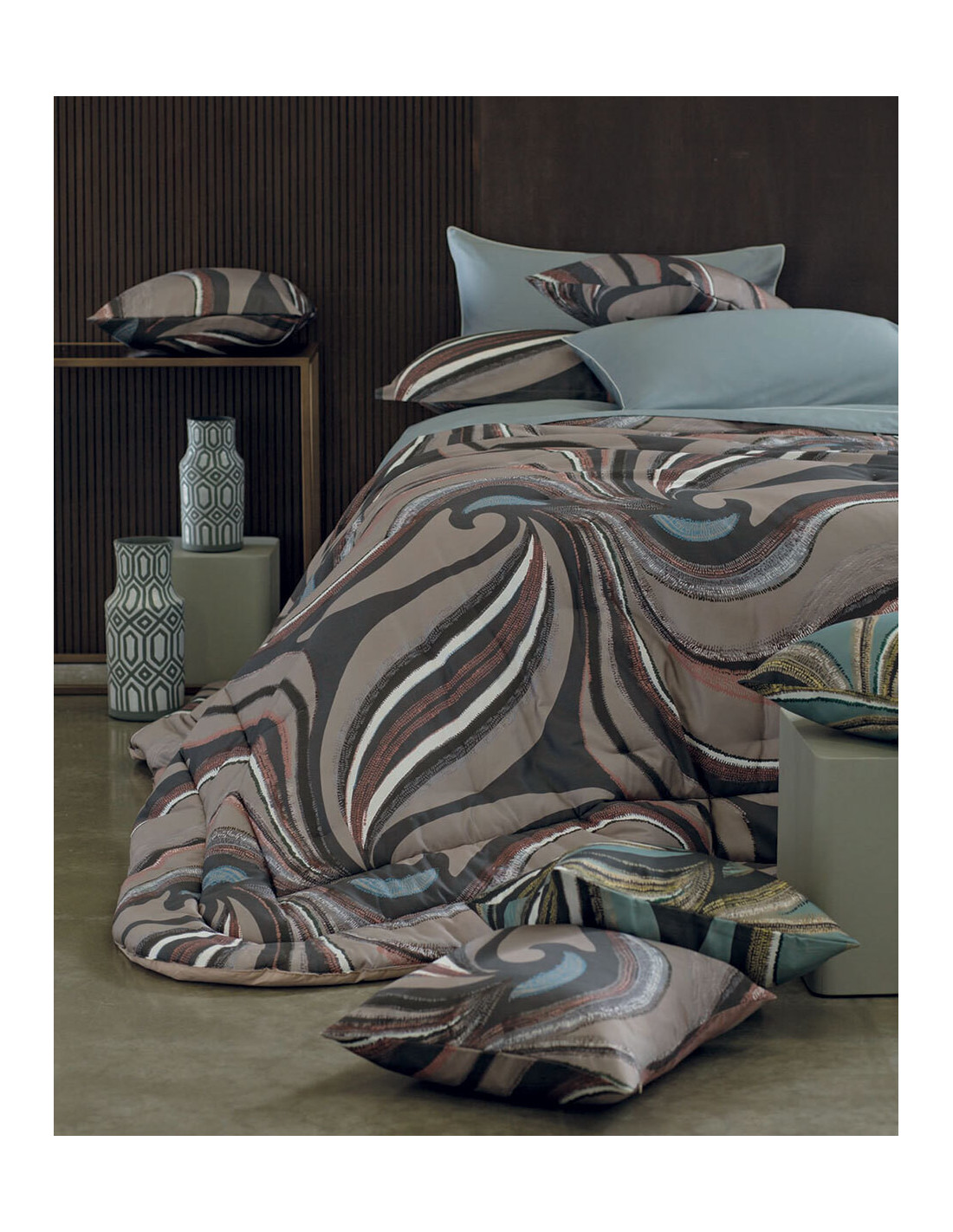 Scopri il piacere di un sonno caldo e avvolgente con questa trapunta fantasia a stampa all-over, realizzata in pregiato raso di cotone 300 TC.