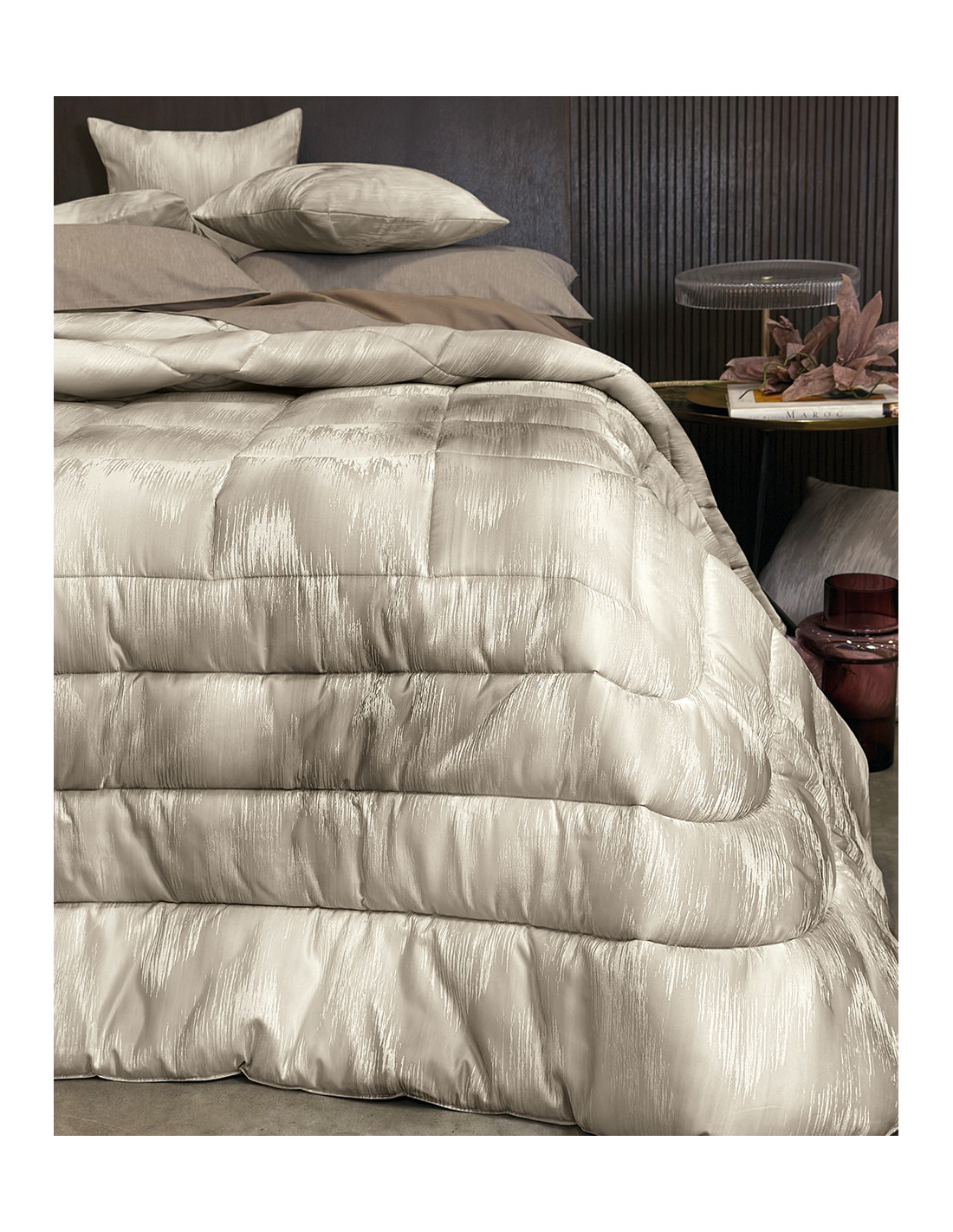 Il tessuto morbido e setoso al tatto dona un tocco di eleganza e raffinatezza alla camera da letto.